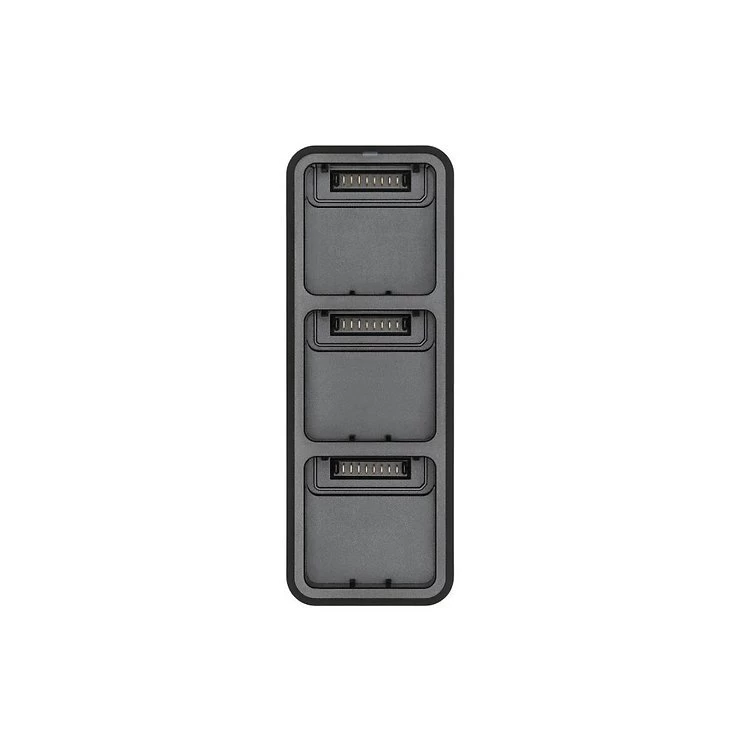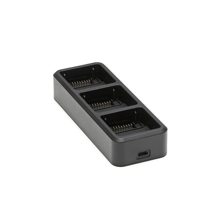 Bei Anschluss an ein tragbares 65 W LadegerÀt oder AutoladegerÀt kann die DJI Mavic 3 Akkuladestation erweitert werden, um drei Akkus aufzuladen. Die Akkuladestation verbessert die Effizienz, indem sie die Akkus nacheinander entsprechend ihrer verbleibenden Leistung auflÀdt, wobei vollstÀndig geladene Akkus zuerst mit Strom versorgt werden.