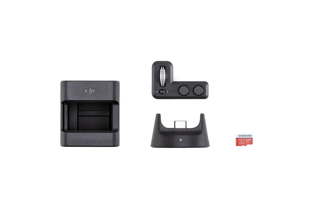 Beinhaltet das Bedienrädchen, das Funkmodul, die Zubehörbefestigung und eine 32 GB Samsung microSD-Karte, zur Erstellung professioneller Aufnahmen.