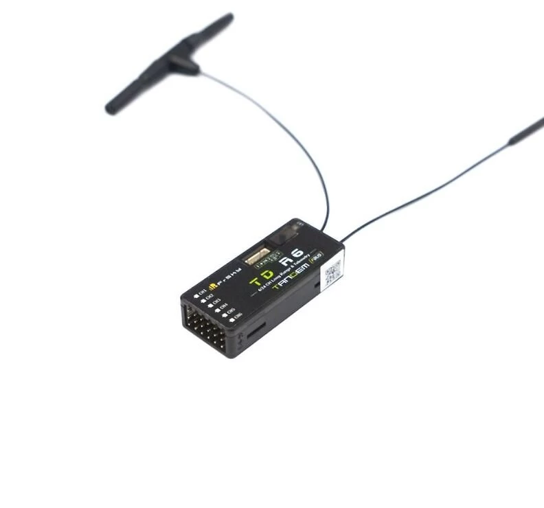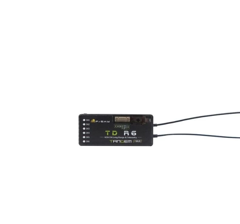 TD R6 EmpfĂ€nger bietet 6 PWM-Kanal-AusgĂ€nge und ist in einem kompakten, leichten Design gebĂŒndelt, der EmpfĂ€nger bietet auch zwei von 3-Pin-Ports entsprechend fĂŒr SBUS Out und FBUS/S.Port. Durch die Einstellung des S.Ports auf das FBUS-Protokoll eröffnen die TD-EmpfĂ€nger die Möglichkeit der nahtlosen Kopplung mit mehreren Telemetrie-GerĂ€ten (Neuron ESC, Advance Sensors, etc.) sowie die Vereinfachung des Build-Setups.
