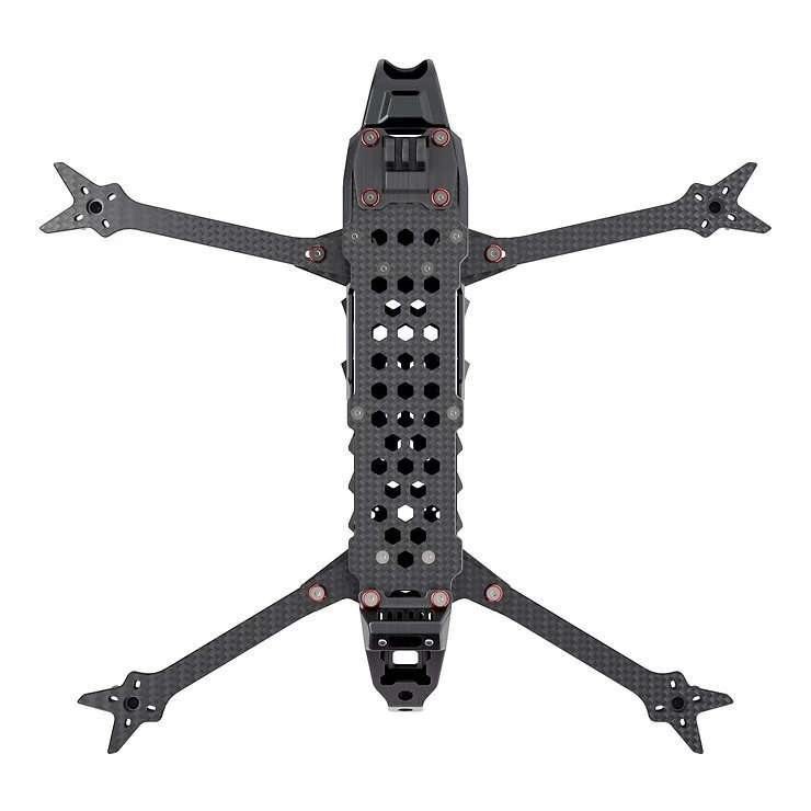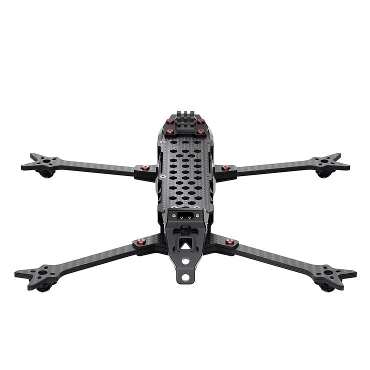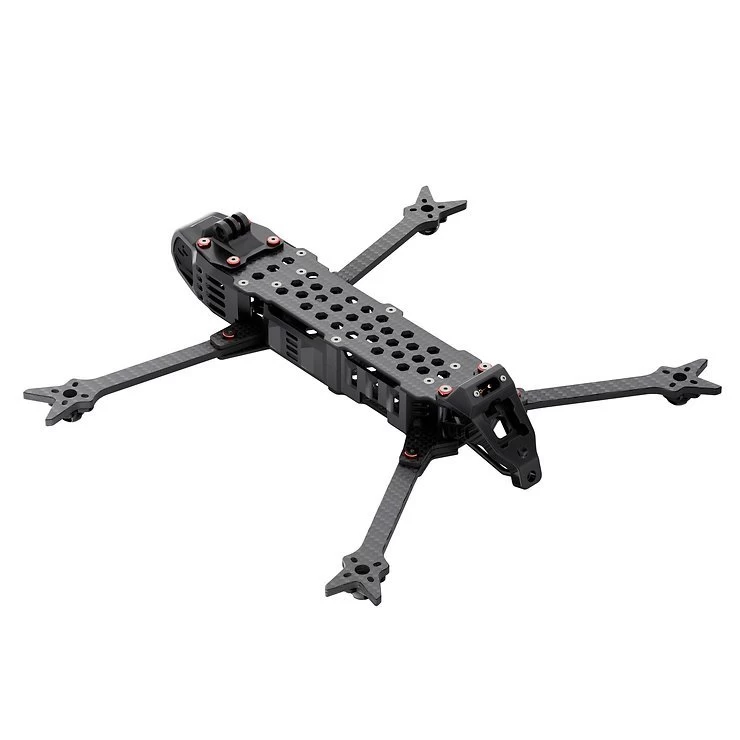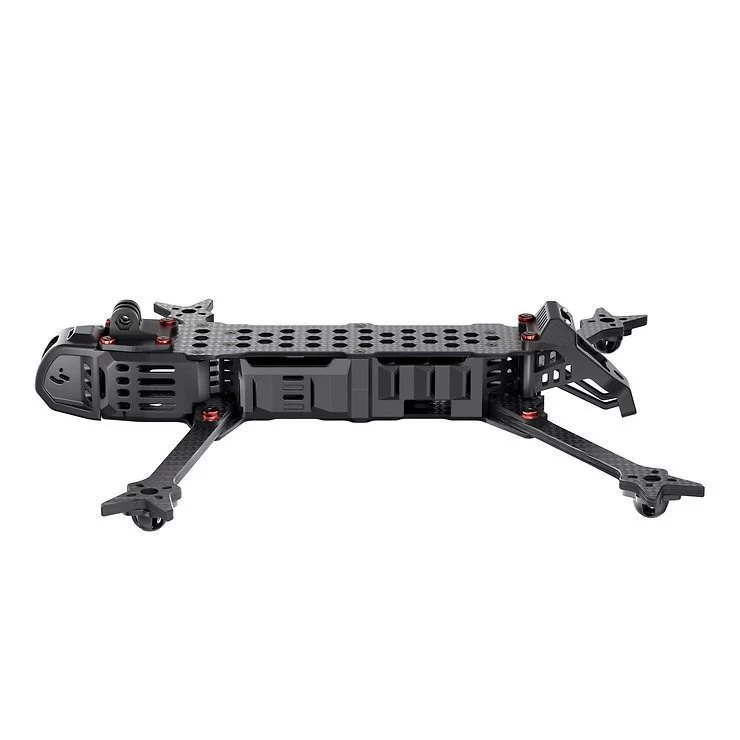Der GEP-LC75 V3 ist ein Langstrecken-Rahmen, der ein H-förmiges Strukturdesign verwendet und seitliche Schutzpaneele am Rumpf hinzufügt, um das elektronische Steuersystem vor Staubverschmutzung zu schützen. Der Arm besteht aus einer 6 mm dicken Kohlefaserplatte, um die Flugstabilität zu verbessern. Die Rumpfstruktur optimiert die Festigkeit der Hauptbelastungspunkte, um eine hohe Crashsicherheit zu gewährleisten.