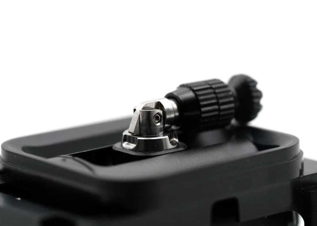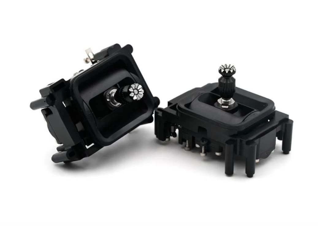 Die Kardanringe werden vormontiert geliefert und können sowohl als „Drossel“- oder „Pitch“-Konfiguration verwendet werden, mit gerasteter oder glatter Drosselfunktion. Der Pitch-Achsenausschlag kann auch mit den mitgelieferten Schrauben um bis zu 10 Grad reduziert werden.