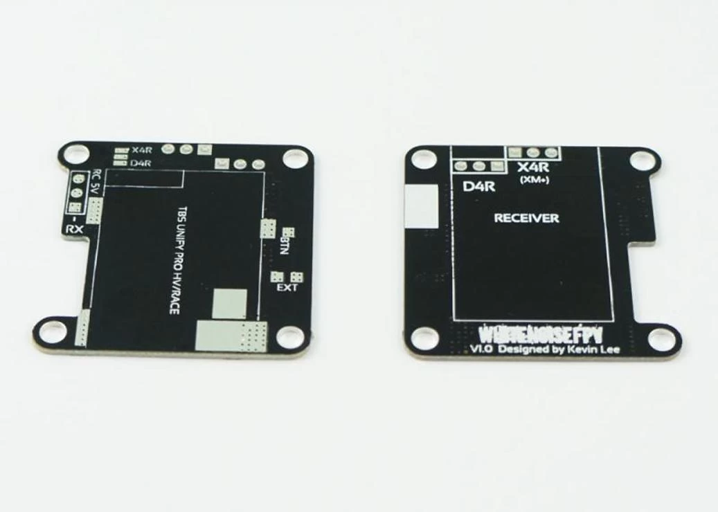 Das Board ermöglicht es ein TBS Unify HV / TBS Unify HV Race und den FrSky EmpfÀnger auf dieses Board flach und sauber als Stapellösung zu montieren.